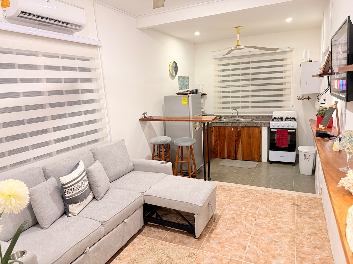 Marcher 20 minutes jusqu'au marché artisanal et aux restaurants de la Ruta 71. Le point de départ du sentier Cerro Cara Iguana est à distance de marche de la casita. Plafonds isolés hauts et 2 ventilateurs de plafond pour le confort. Patio privé avec hamac pour une sieste l'après-midi. Laveuse/sécheuse dans la casita. Eau chaude partout. La cuisine dispose d'une table de cuisson à 2 feux, d'un four de comptoir, d'un four à micro-ondes, d'une casserole instantanée, d'une poêle électrique, d'un mixeur et d'une cafetière. 2 fournisseurs d'accès Internet et un petit espace de travail disponible. * Pas de téléviseur * Propriété non-fumeur