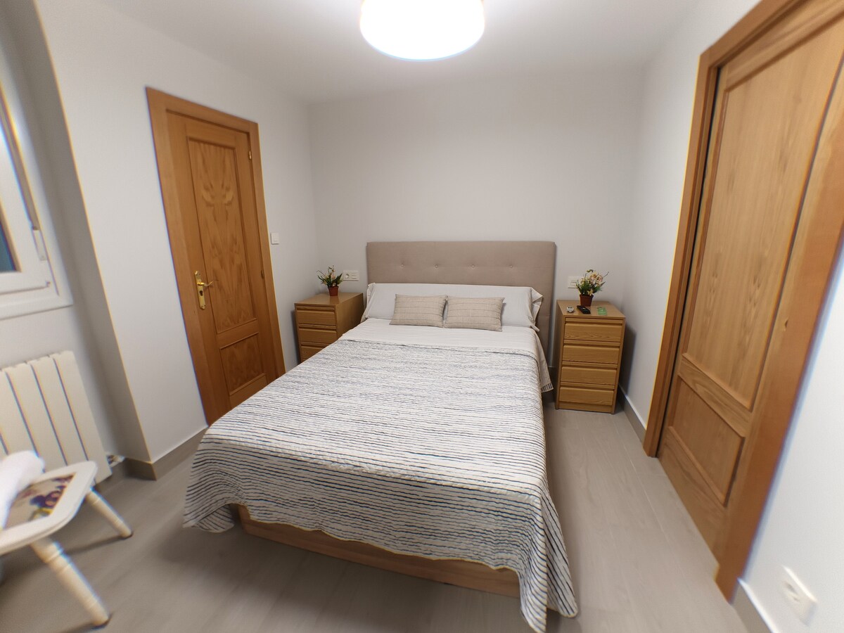 Il dispose d'un lit double (double) avec salle de bain partagée. Toutes les chambres disposent de Wifi, télévision, chauffage, prises à côté du lit et surtout propreté. Sèche-cheveux dans toutes les salles de bain. Chambre équipée de : 1 lit double (double) 1 table de chevet Miroir Télévision Wi-Fi C'est décrit Chaise Armoire Cintre Ventilateur de plafond Réfrigérateur Commode Plancher flottant Linge de lit et de lit Belvédère avec coin salon