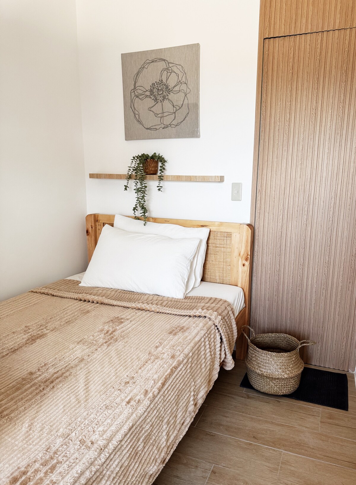 Un appartement meublé de type studio (34 m²) entièrement climatisé, cuisine privée avec cuisinière à induction, réfrigérateur, four à micro-ondes, grille-pain, ustensiles de cuisine, douche chaude et froide et très proche (5-6 minutes en voiture) de l'Université des Philippines Los Baños et 4-5 minutes de l'Institut international de recherche sur le riz (IRRI) et 3-4 minutes de l'Institut de sélection végétale (IPB).