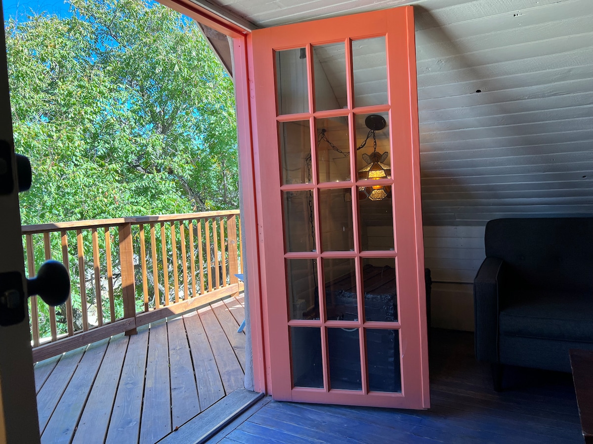 Avec son plafond en bois, ses vigas et ses corbeaux, cette Casita de style stuc adobe de Santa Fe est pleine de lumière et de charme avec des coins salons à l'intérieur et à l'extérieur, une kitchenette, un sol carrelé, une salle de bain avec douche et un lit Queen Size. Vue panoramique sur le sud du bassin de Galisteo et les montagnes Ortiz. Crêtes ondulantes de genévriers et de pins avec des rochers rouges et des arroyos. Accès facile à Santa Fe Plaza ; magasins et restaurants. Juste à côté du sentier Turquoise Trail et à proximité de l'équitation, du parc Madrid et du parc Cerrillos St Park.