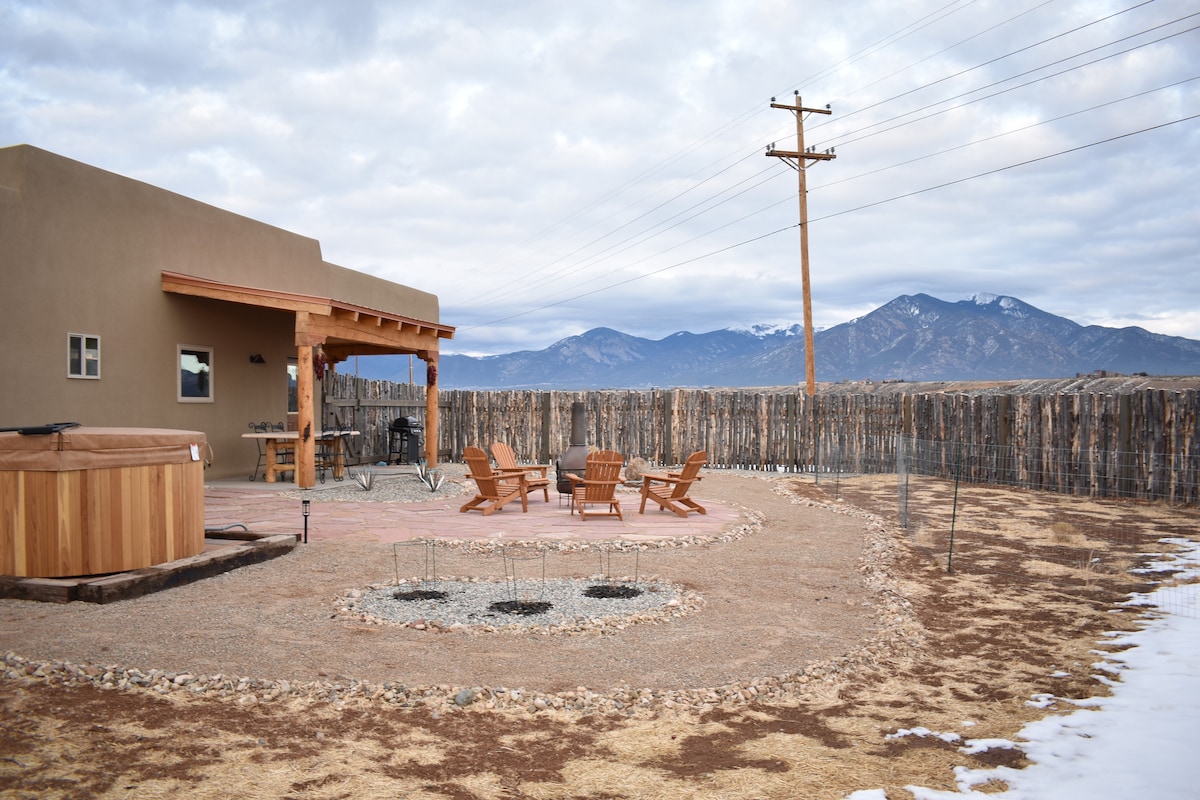 Profitez de la vue imprenable à 360° et de la sensation de calme dans notre belle maison neuve de deux chambres avec un espace ouvert sur 3 côtés de la propriété, sur un acre à seulement 4 miles de Taos. Vous obtenez le meilleur des deux mondes : vous avez l'impression d'être loin de tout tout en étant à quelques minutes seulement d'une gastronomie et d'un art incroyables. À moins de 30 miles de Taos Ski Valley et d'Angel Fire Resort. Votre escapade idéale vous attend !