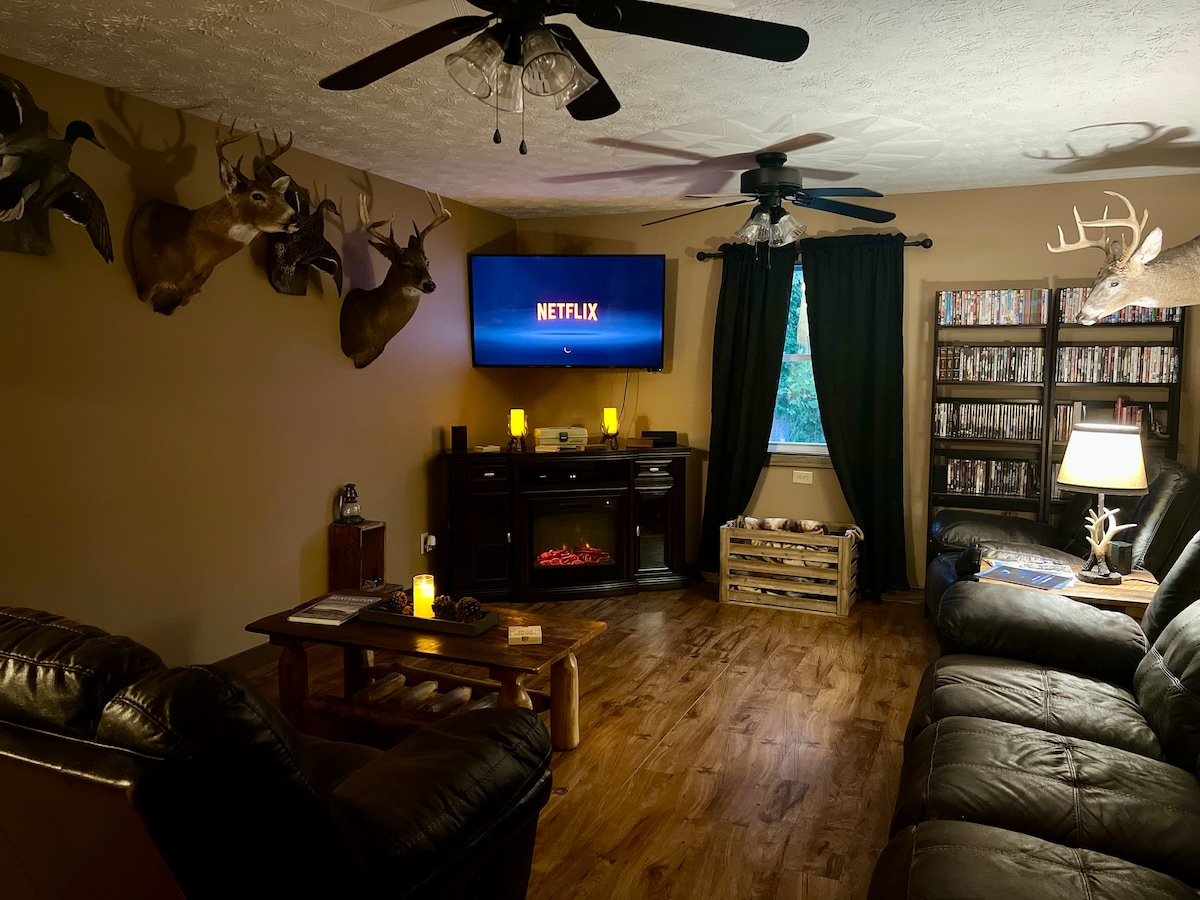 « Country Roads Take Me Home » à Almost Heaven Lodge. À quelques minutes du parc d'État de Beech Fork, du centre-ville de Huntington, de l'aéroport, d'Ashland KY et de l'Université Marshall ! Vous y trouverez des appareils électroménagers modernes, du parquet stratifié avec de la moquette dans les chambres, des canapés en cuir, un lit King Size et une lit Queen Size, une cuisine complète, une salle de bain complète, une buanderie, une salle à manger, deux terrasses et un foyer à l'extérieur. La maison est située directement sur Twelve Pole Creek.