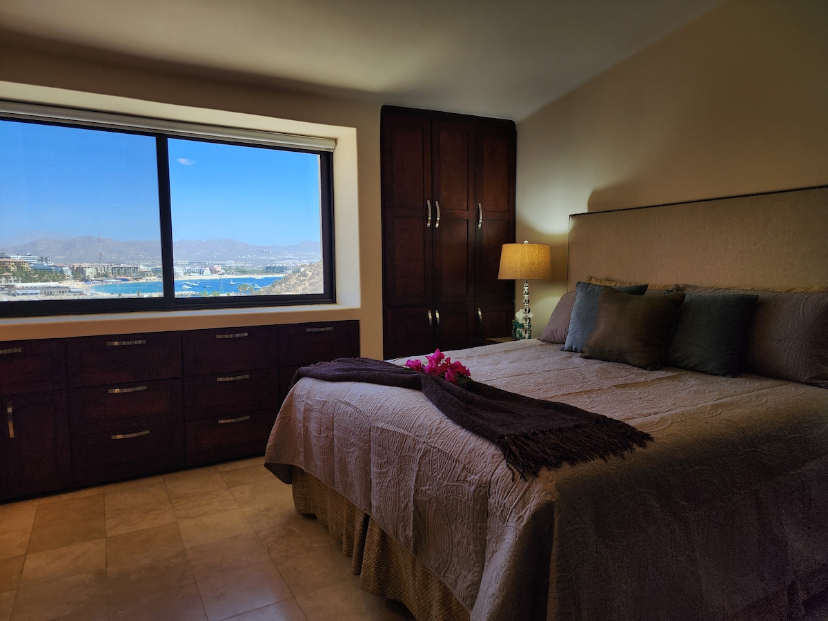 LA PISCINE EST OUVERTE ! Situé au cœur du centre-ville de Cabo, ce complexe est sur la marina et à quelques pas du sable. Cette unité rénovée est l'un des secrets les mieux gardés de Cabo. Le logement est situé au 3e étage et fait face à la marina. Cette suite dispose de portes à galandage, d'un lit King Size, d'une télévision, d'une cuisine entièrement équipée, de la climatisation, de chaises longues, d'une connexion Wi-Fi privée, et la liste est longue. La marina peut être bruyante toute l'année. Il y a des fenêtres insonorisées, mais il peut y avoir du bruit des bars et des clubs. Nous ne sommes pas responsables de la météo.