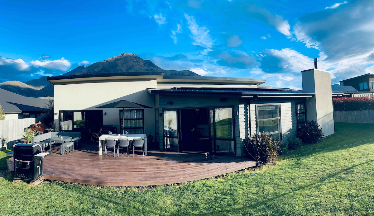 - Vue imprenable sur les montagnes - Cadre privé. - Entièrement autonome - Salon et cuisine spacieux et ouverts - Chant d'oiseaux sauvages. - Utilisation exclusive du spa chauffé au bois - 85 $ supplémentaires - Bain extérieur (ou bain à remous) sous les étoiles scintillantes À 5 minutes en voiture du centre commercial 5 Mile À 20 minutes de route de Queenstown - À 150 m du sentier des rivières jumelles - 4 vélos et casques - Les domaines skiables de Remarkable et Coronet Peak - à 30 minutes. - À proximité des superbes sites et attractions de Queenstown - Stationnement hors rue