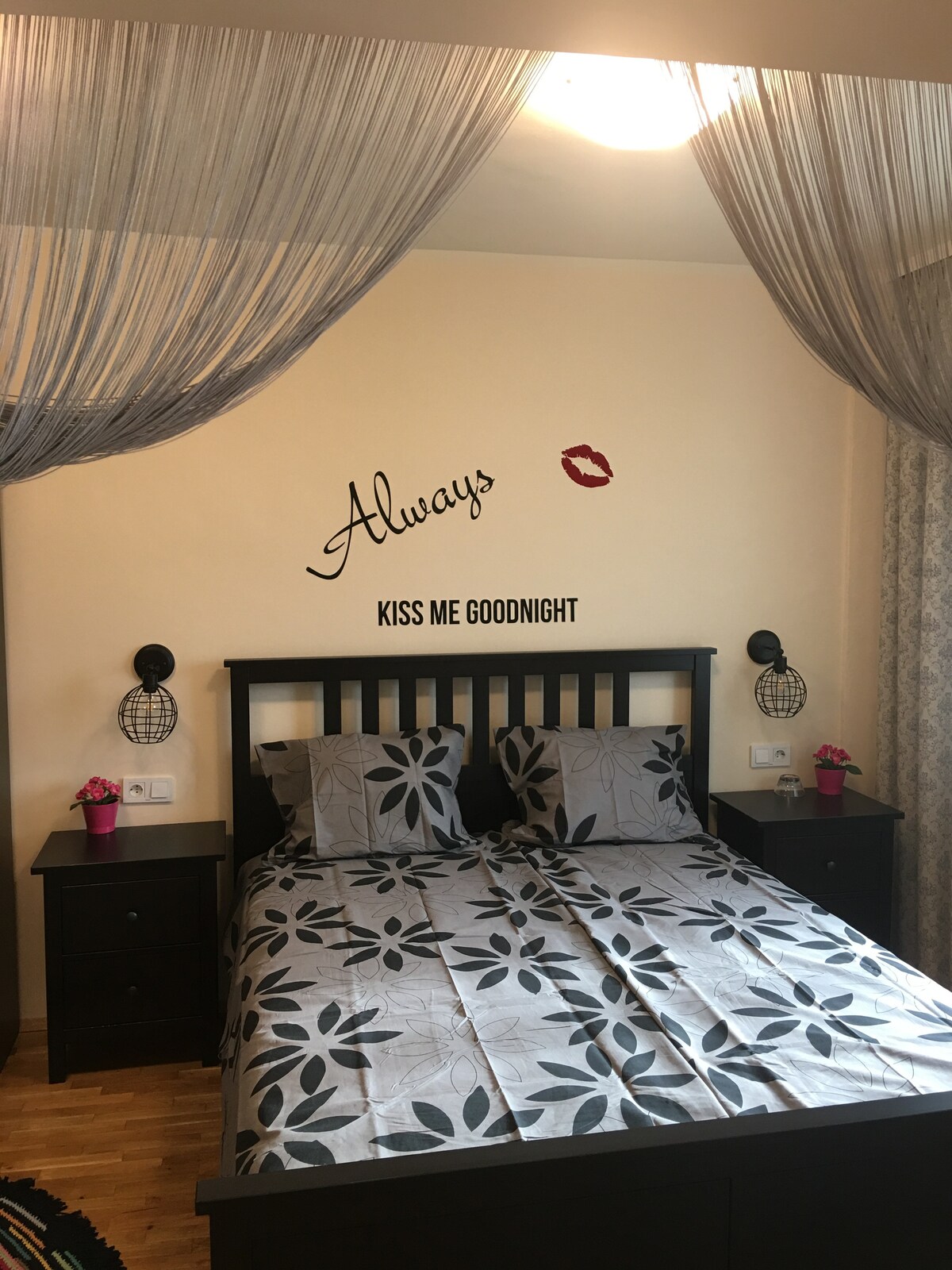 Un tout nouvel appartement accueillant avec une superbe vue sur la montagne Vitosha. Meublé dans un style intérieur contemporain, ce qui le rend aéré et spacieux. L'appartement est situé dans un complexe privé, au 9e étage. Un endroit chaleureux et confortable ! À seulement 8 minutes à pied de la station de métro Inter Expo et à 10 minutes en voiture du centre-ville. Il est également pratique de se rendre à l'aéroport, à la fois en métro et en taxi.