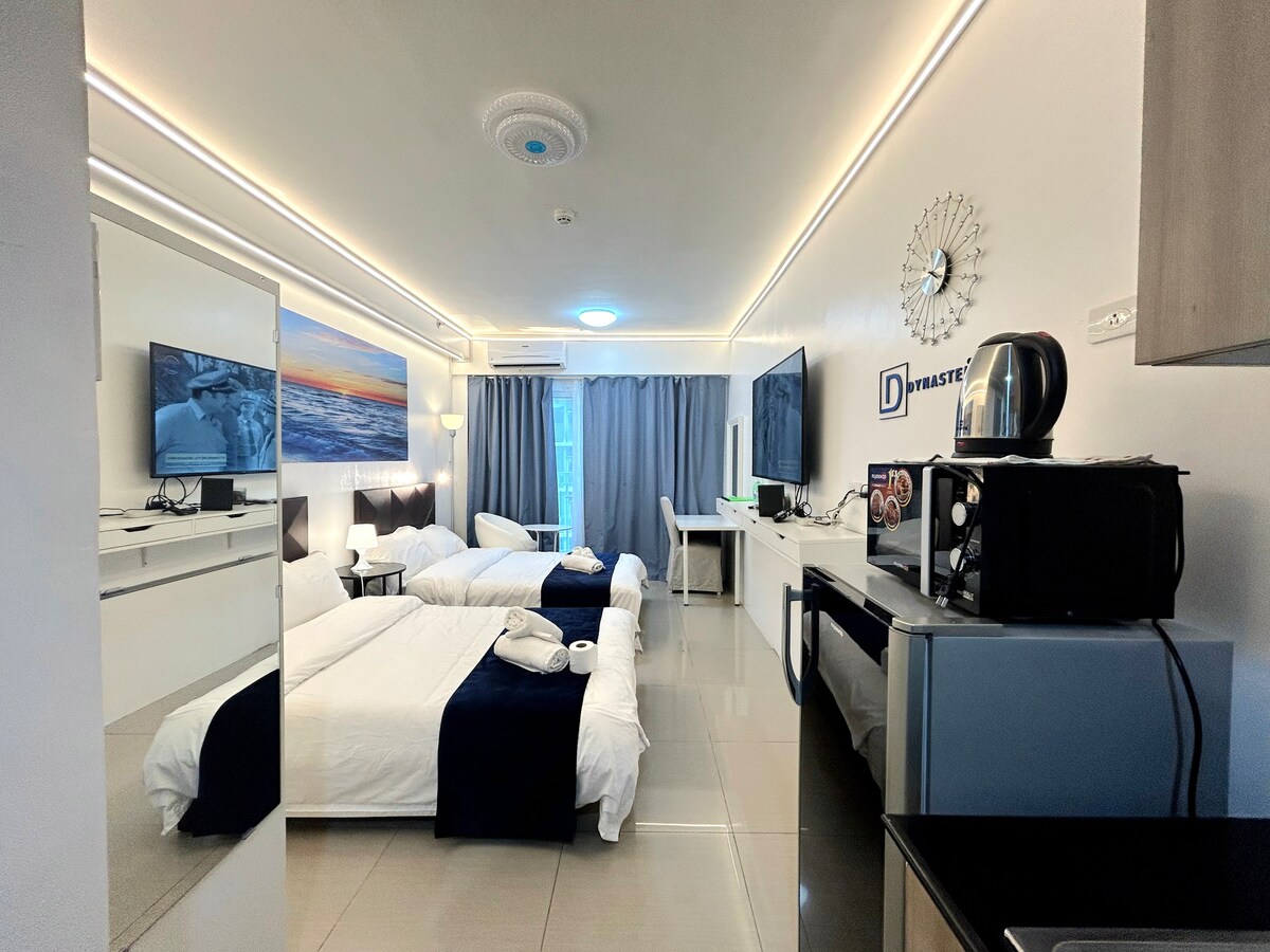 Profitez d'un appartement à faible coût, d'un appartement à l'ambiance de l'hôtel et d'un séjour pratique avec deux lits doubles et des commodités incroyables. Un appartement bien équipé avec des piscines incroyables et relaxantes, un restaurant délicieux et un accès facile aux activités récréatives, aux magasins de détail et aux centres d'affaires importants. L'un des plus grands centres commerciaux des Philippines, SM MOA, avec SMX et IKEA, n'est qu'à distance de marche. L'aéroport NAIA, Okada, Solaire, COD, PICC, WTC et la baie de Manille sont accessibles à proximité.