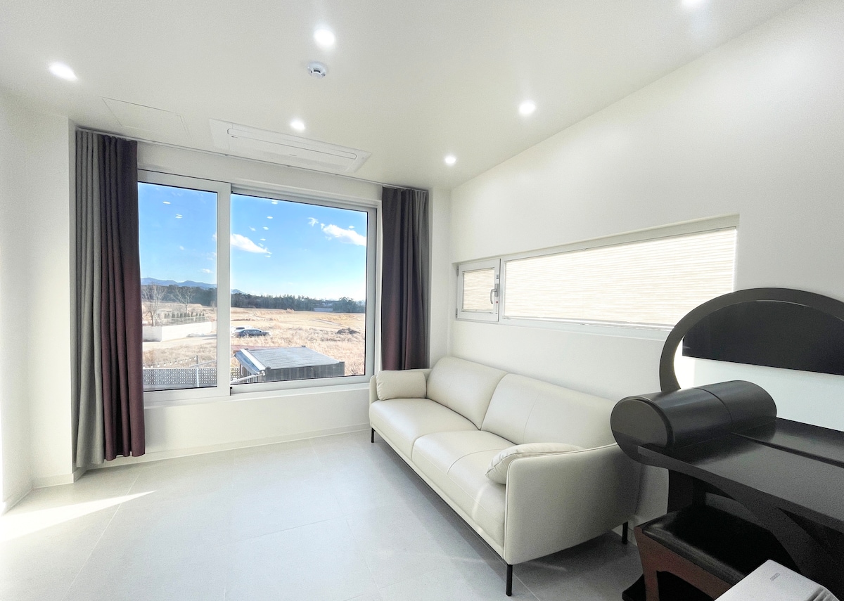 Situé sur la route du complexe touristique de Bomun et le temple de Bulguksa, notre logement se trouve dans un bon quartier à environ 20 minutes du complexe de Bomun, à 5 minutes du complexe de Bomun, dans le complexe de Bomun, à 5 minutes, et au centre-ville de Gyeongju pendant environ 20 minutes. Hiyasins est un studio chaleureux, idéal pour les couples. Profitez du barbecue et détendez-vous sur la terrasse privée en regardant la cour :) Il s'agit d'un logement pour 2 personnes (jusqu'à 3 personnes), et un tapis pour une personne sera fourni en fonction du nombre de personnes, et un tapis pour une personne est fourni en fonction du nombre de personnes. (Les nourrissons et les nourrissons doivent être sélectionnés comme enfants et personnes ajoutées) * La piscine est une piscine extérieure partagée qui n'est ouverte que pendant les mois d'été et qui n'est pas une piscine chauffée. * Nous changeons la literie (Housse de couette, Housse d'oreiller) tous les jours. * Le charbon de bois et le barbecue sont préparés pour 20 000 won pour 2 personnes, donc le barbecue est autorisé sur la terrasse individuelle. * Encore une chose que je vous dirai, il y a des chats dans le jardin. Si vous êtes allergique ou avez peur des animaux parce que vous êtes des enfants qui aiment les gens, merci de faire une réservation discrète.