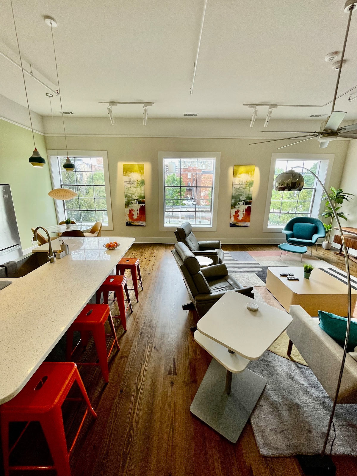 Loft unique, nouvellement construit, de 1 300 pieds carrés, avec de belles finitions, un mobilier intéressant et beaucoup de lumière naturelle. Un excellent emplacement dans le centre-ville de Macon à quelques minutes à pied des restaurants, bars et divertissements en direct encore plus calme que le centre de la ville. Livré avec deux places de stationnement hors rue juste devant le loft. Sister loft à côté peut être ajouté pour les grands groupes.