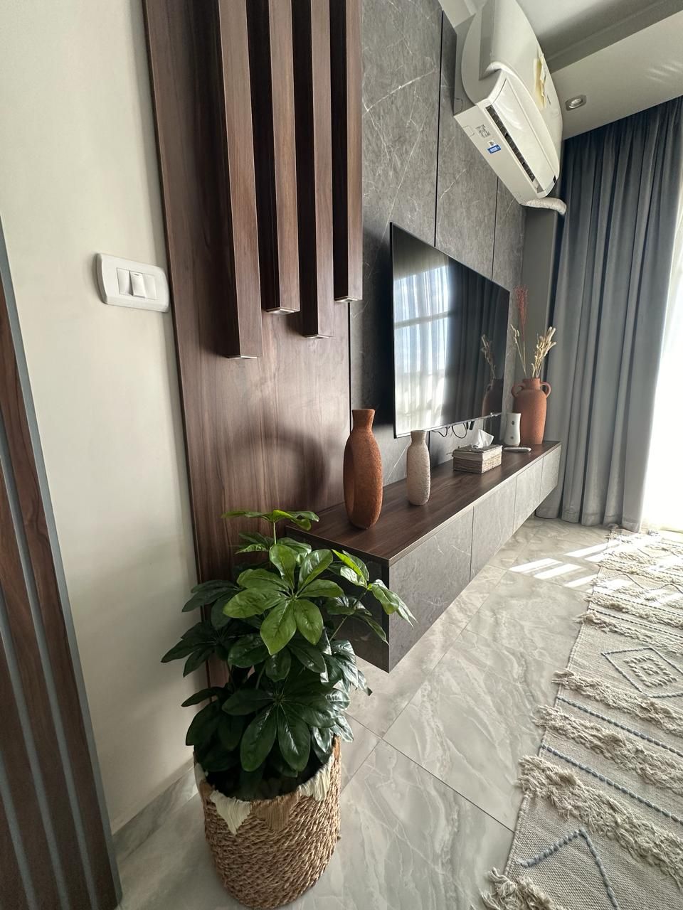 Ce que ce logement offre • 🛏️ 2 chambres (1 chambre principale avec salle de bain) + canapé-lit • Jusqu'à 6 voyageurs • ✨ Nouveau confort avec des finitions modernes • ❄️ 3 climatiseurs chauds et froids + appareils électroménagers neufs • 📺 Téléviseur intelligent Google de 65 po • 🌐 Internet haute vitesse à fibre optique • 🍽️ Cuisinette entièrement équipée • 🛋️ Grand salon et salle à manger • 📍 3 min de Suez Road • 8 min de Madinaty et Open Air Mall
