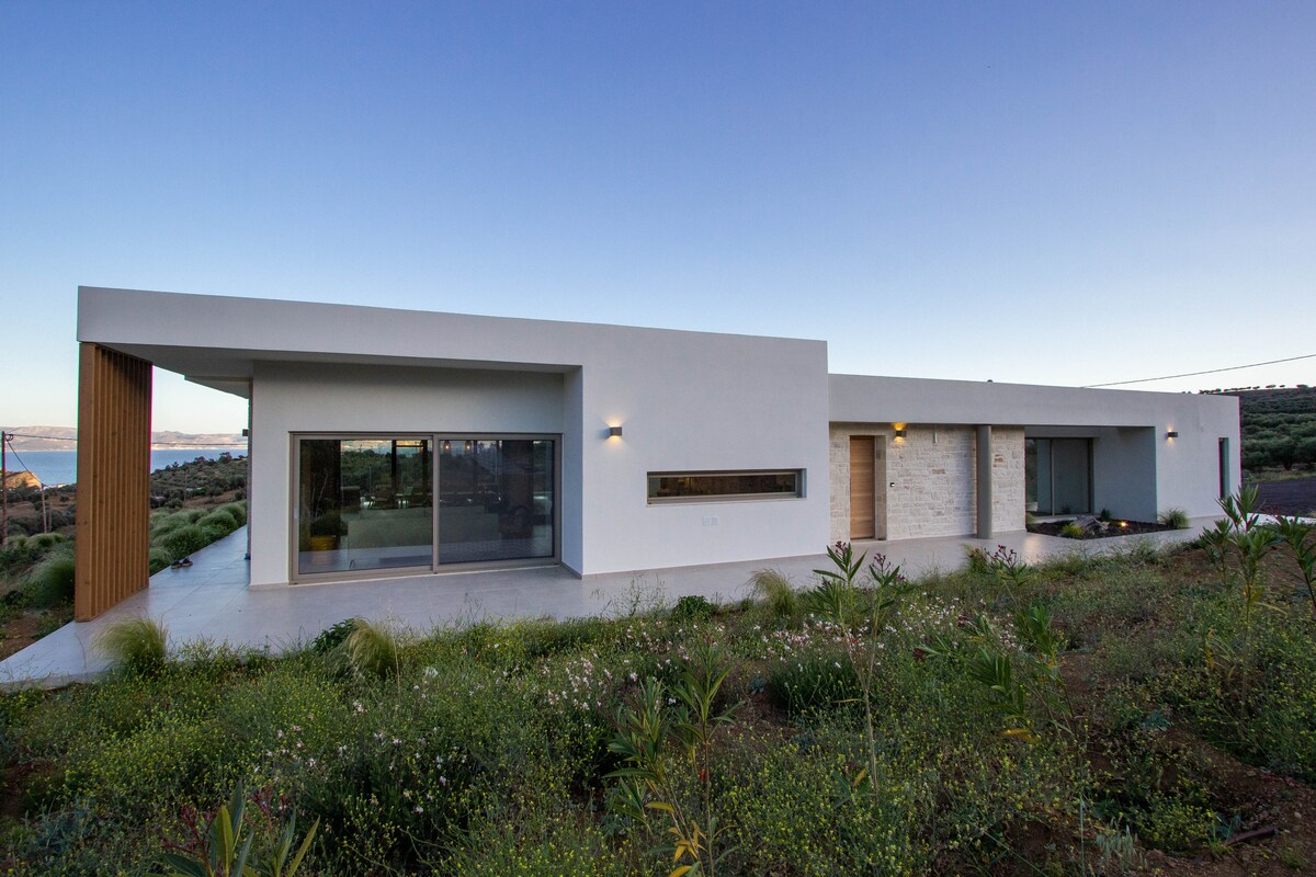 Villa Prima est une résidence nouvellement construite située au pied de la montagne Psiloritis, juste à l'extérieur du village traditionnel de Magarikari. La tranquillité de l'endroit vous aidera à vous reposer l'esprit tandis qu'une promenade dans la nature crétoise vous revigorera. La Villa Prima offre une vue incroyable sur la baie de Messara, les îles Paximadia et le mont Kartalos, qui créent ensemble un paysage que vous n'oublierez jamais. L'environnement confortable mais luxueux en fait une destination idéale pour les amoureux de la nature, les familles ou les grands groupes.