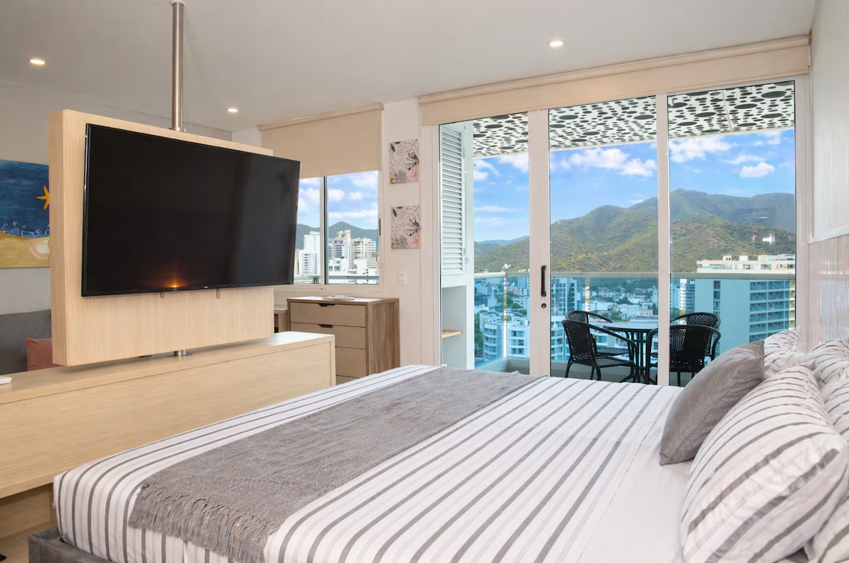 Vivez une expérience inoubliable à Santa Marta en famille ou entre amis dans un magnifique club de plage. Vous trouverez : 🛁 Jacuzzis. 🛏️ 2 chambres avec lits Queen et simples. 🍳 Cuisine entièrement équipée pour préparer tout ce dont vous avez besoin. 🌅 Balcon privé avec vue latérale sur la mer. 🏖️ Accès direct à la plage. 🏊 Immeuble avec 4 piscines. 🏋️ Gymnase. 🧖 Spa et zones humides. 🍽️ Restaurant avec option de petit-déjeuner. 👩💻 Espace de coworking. 🔐 Environnement exclusif et sécurisé.
