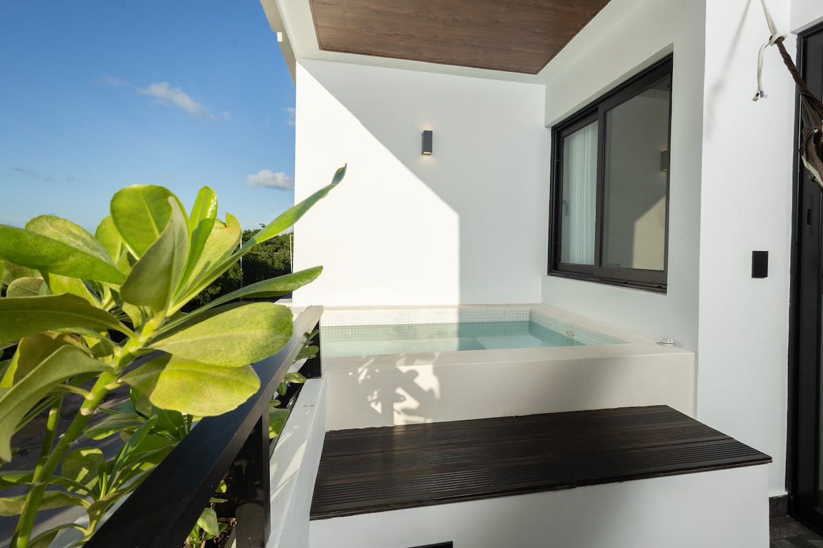 La Villa Ek Nah est un incroyable penthouse en bord de mer à Mahahual. Emplacement privilégié : la Villa Ek Nah est située juste en face de la mer, ce qui signifie que vous pourrez vous réveiller avec des vues spectaculaires et profiter de la brise marine tout au long de la journée. Accès à des installations exclusives : en tant qu'invité de notre penthouse, en plus d'avoir accès aux installations du complexe et un accès direct à l'océan, vous aurez également accès au toit privé avec jacuzzi, palapa et barbecue.