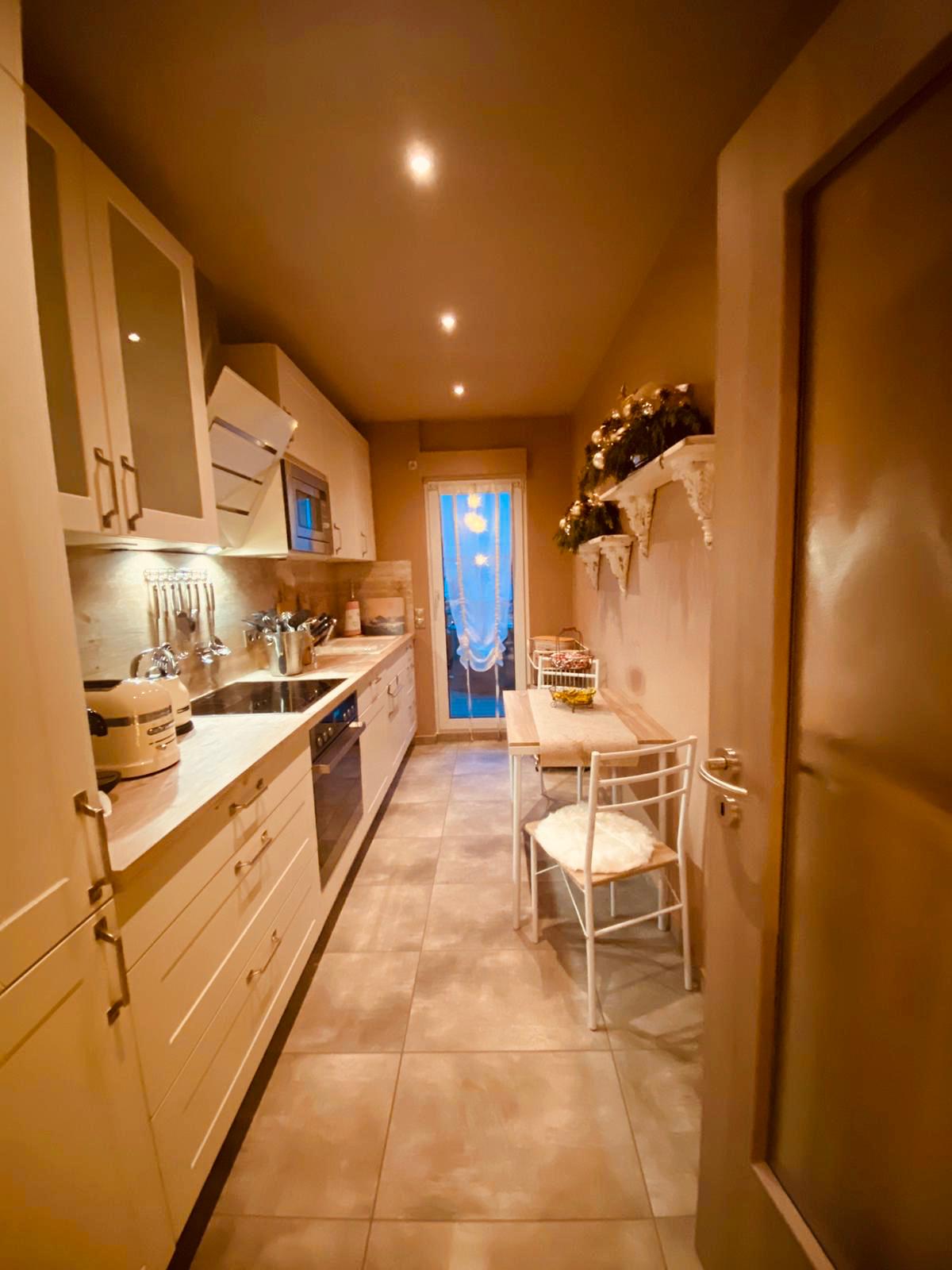 Notre appartement privé moderne et confortable au dernier étage d'une maison de trois familles ne laisse aucun désir inassouvi :) L'appartement studio ouvert et inondé de lumière (68m²) au dernier étage comprend un salon avec Smart TV, une grande salle de bain avec baignoire et douche, un coin couchage avec lit double, une armoire, deux commodes, un porte-manteau ainsi qu'une cuisine ouverte entièrement équipée et un beau balcon avec des sièges. Le Wi-Fi est bien sûr inclus. Idéal aussi pour les « locataires de longue durée » :)