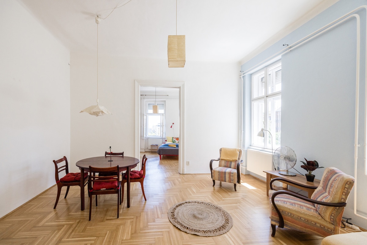 When you can lounge with a glass of wine or sip from a cup of hot coffee on a spacious flat while admiring a dream-like view of the Hungarian Parliament & Danube river, then, why not? Newly refurbished, this historical flat is located in the heart of the city (metro-tram, restaurants cafes, and supermarkets all a stone's throw away). It's THE perfect base for friends, families, and couples visiting iconic Budapest. Many fell in love with this rare and authentic space, and we hope you will too!