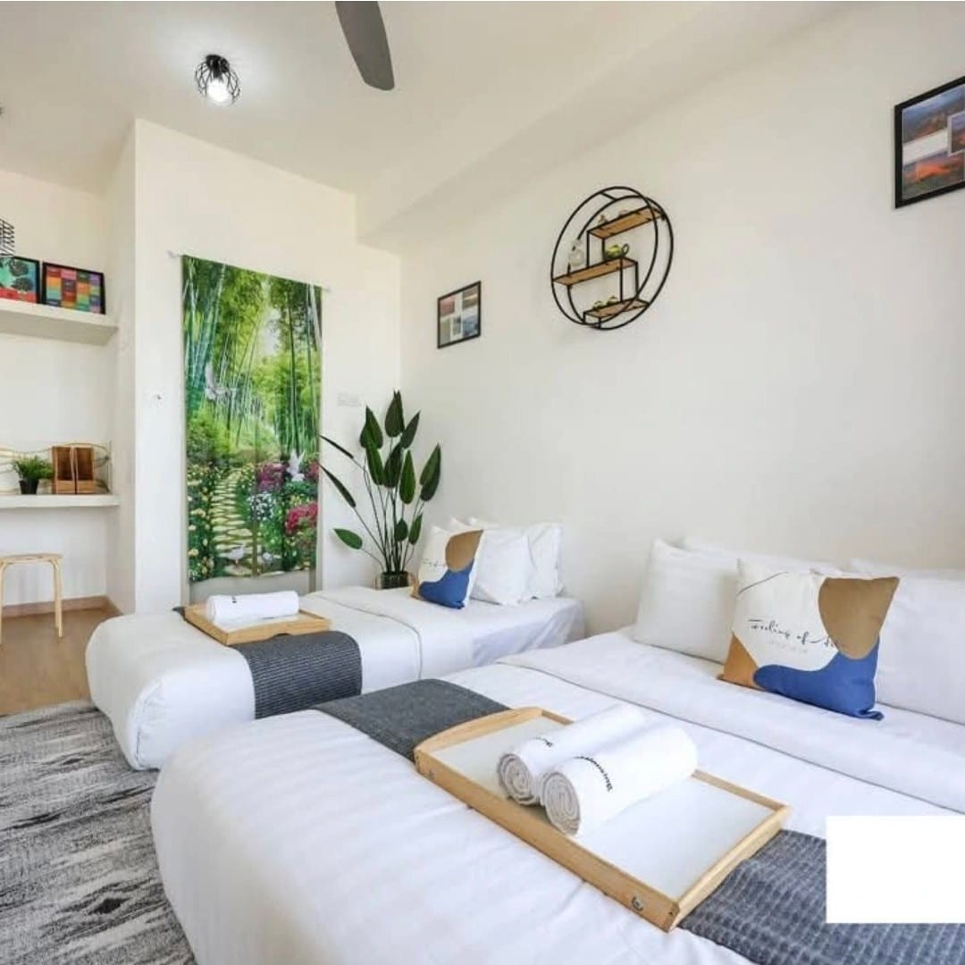Combien de personnes peuvent séjourner ici : L'appartement peut accueillir 4 personnes et reste confortable pour 6 personnes. Il est situé au cœur de la ville de Melaka et à seulement 3 km du bâtiment historique A'Famosa et du bâtiment Studthuy. Installations : Fournit un parking GRATUIT pour 1 voiture au niveau 2. D'autres peuvent se garer au rez-de-chaussée. Liste des équipements fournis dans la maison : Cet appartement élégant comprend également 2 lits Queen Size et 1 canapé convertible Queen Size, 1 lit Toto supplémentaire, une télévision Android LED 60", une connexion Wi-Fi, etc.