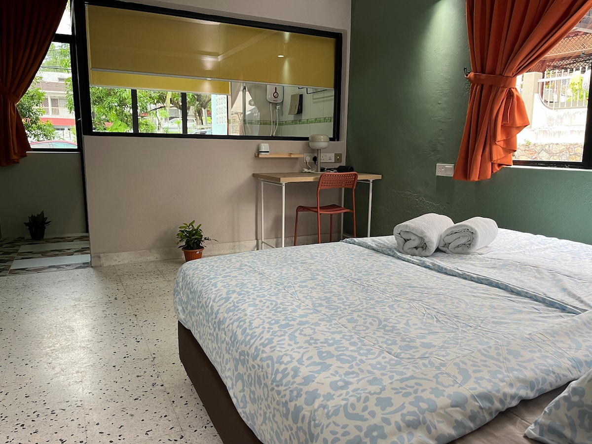 Profitez d'un séjour de détente dans notre maison d'hôtes moderne et confortable sur Cenang Street, à seulement 10 minutes à pied de la plage. Parfaite pour les couples, avec un lit king-size, une salle de bain privée avec douche chaude, un balcon avec vue sur la rivière Cenang, la climatisation, une télévision, un mini-réfrigérateur, une bouilloire et le Wi-Fi. Situé à distance de marche des cafés, des restaurants et des magasins, vous aurez un accès facile à tout ce que Cenang a à offrir.