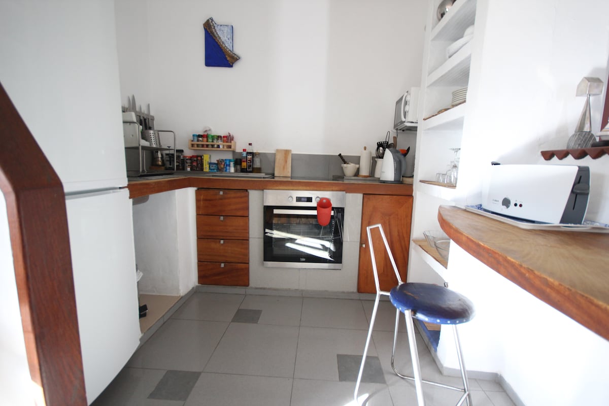 Studio privé dans la cour arrière. Numéro d'enregistrement VFT/MA/01792. Chambre avec lit queen size, climatisation, wifi gratuit, salle de bain avec douche, cuisine équipée avec lave-vaisselle, lave-linge, machine à café, etc. Le studio est situé à côté de la maison principale. L'espace commun partagé avec les hôtes comprend une piscine, des chaises longues et un barbecue. Situé dans un quartier très calme, à 5 minutes de la plage de Burriana et à 15 minutes du centre-ville