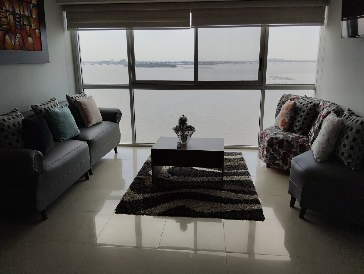 C'est une suite très confortable et accueillante, dans le meilleur quartier de Guayaquil, avec vue sur la rivière Guayas, située à Puerto Santa Ana Edificio Torres Bellini I, dans un secteur central à 5 minutes de l'aéroport, de la vie nocturne, des restaurants, à quelques mètres de l'hôtel Wyndham, idéal pour les voyageurs, qu'ils soient des hommes d'affaires ou des touristes. Comprend le wifi, Netflix et tout ce dont vous avez besoin pour un séjour agréable. Le bâtiment dispose de sa propre centrale électrique.