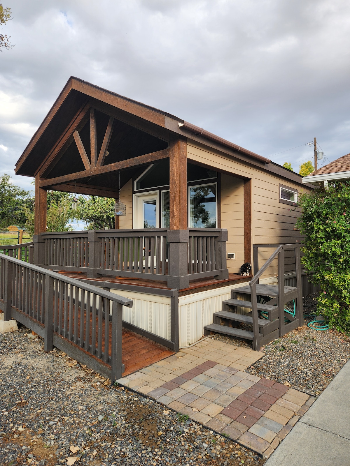 Notre maison d'hôtes rustique en conteneur d'expédition se trouve juste à l'extérieur de la ville sur un ranch de 10 acres. Profitez d'une nuit paisible, avec les sons du ruisseau et quelques animaux de ferme mélangés, y compris des chiens qui visiteront votre porte d'entrée et garderont la propriété. Les chiens peuvent aboyer en pleine nuit ! Notre petite maison d'hôtes confortable a des détails personnalisés et uniques partout et est parfaitement adaptée pour 1-2 personnes. Cette maison est située en haut d'un chemin de terre et il y a un parking juste devant la petite maison.
