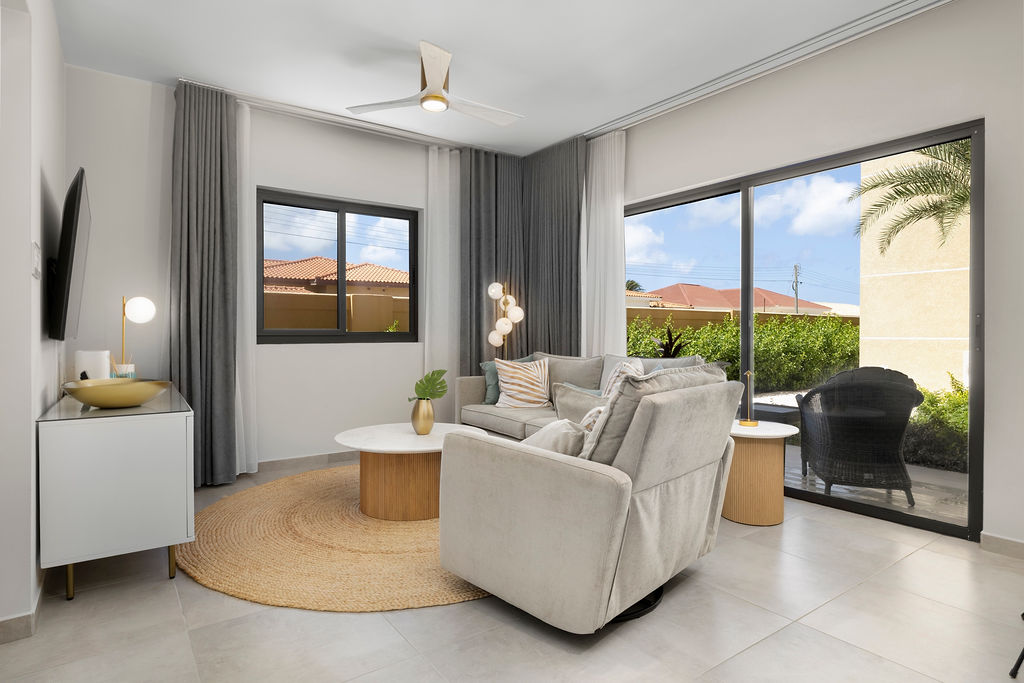 This cozy 1 bedroom, 1 bathroom retreat is located on the beautiful landscaped grounds of the exclusive Gold Coast gated community in Aruba’s northern region. Just minutes away from the turquoise waters or Arashi Beach and Boca Catalina and Arubas Championship golf course at Tierra Del Sol. Perfect for couples, and the working individuals with modern amenities and resort-style facilities.