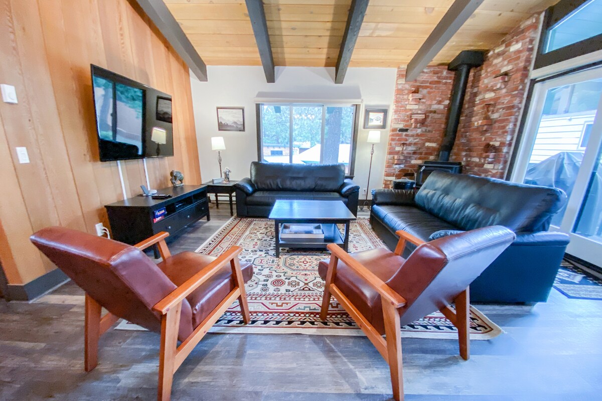 SPACIEUX 4 lits + LOFT en bout de rue avec vue sur la montagne. Notre maison de vacances est proche des sentiers, des restaurants et des magasins de Mammoth Mountain. Grand salon pour les personnes qui se rassemblent, mais de l'espace pour ceux qui recherchent du calme. Idéal pour les groupes et les familles nombreuses. Comprend une cuisine entièrement équipée, un coin repas pour 12 personnes, un foyer, de nouveaux planchers de bois dans le coin repas/salon, un balcon, une télévision intelligente de 55 po dans le salon et des télévisions intelligentes dans toutes les chambres. Wifi gratuit et laveuse/sécheuse.