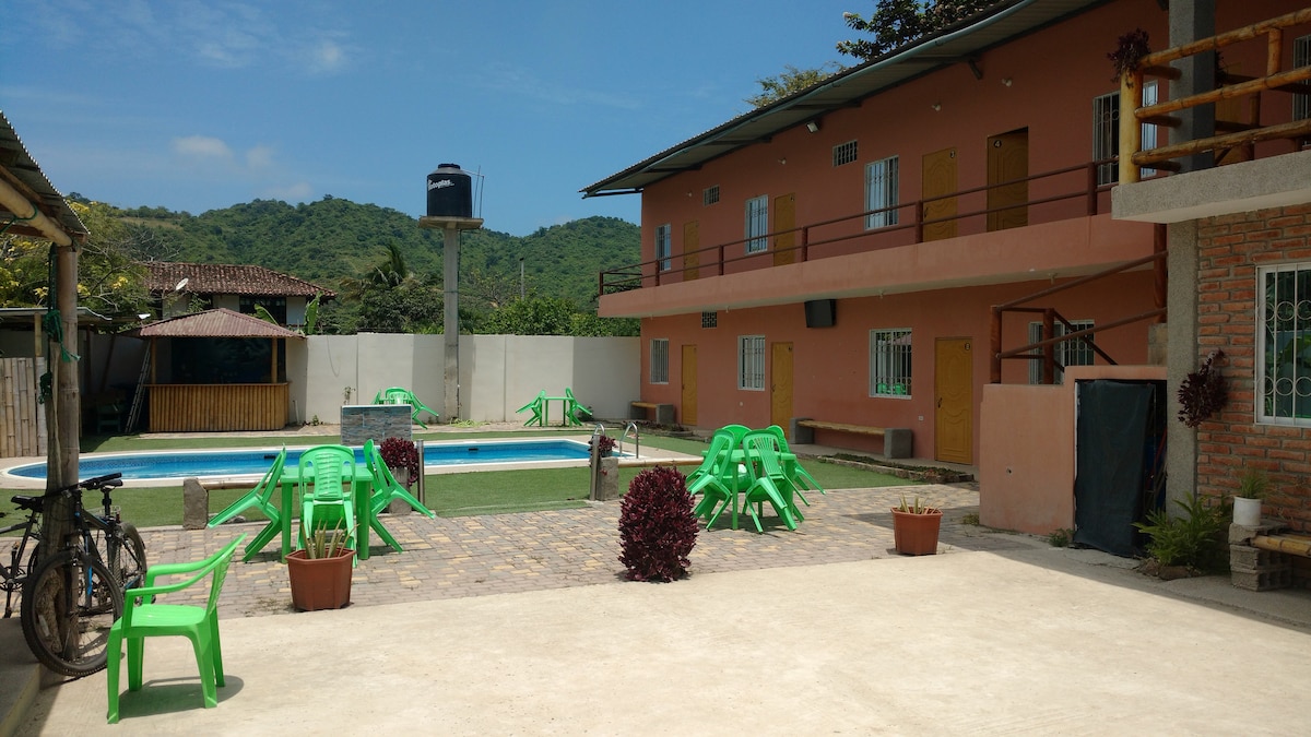 Auberge avec vue sur la mer et accès à la plage à Salango Manabi Un endroit pour se reposer et profiter. nous avons un espace barbecue et une piscine.