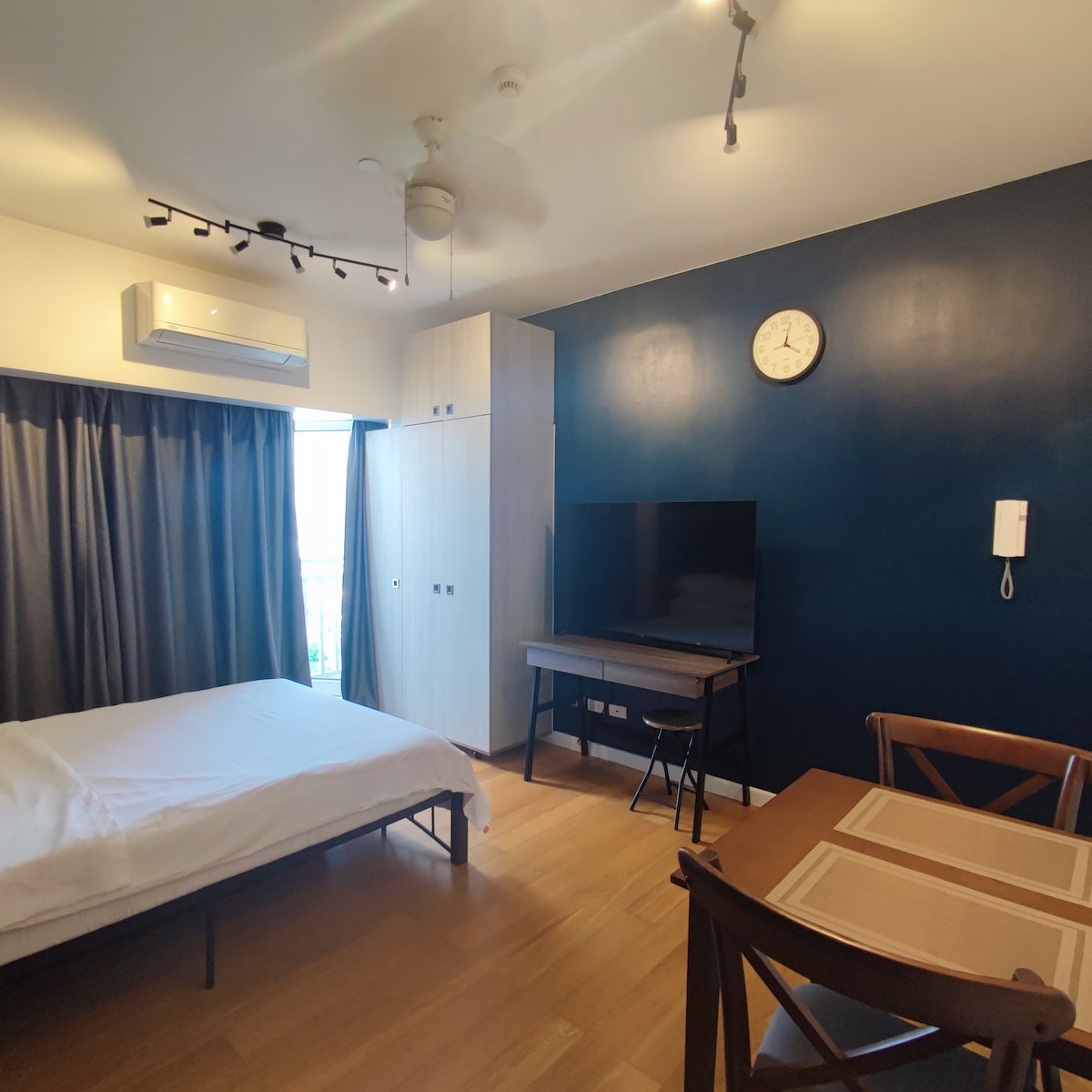 ✨ Free pool use (2 pax) for the month of November, subject to availability and property admin approval. ❗️Pool is closed every Monday. ‼️DISCLAMER - AIRBNB listing only - NO other listing from other platforms __________ Stay cozy at this peaceful condo in the heart of Pasig. Enjoy Netflix on a Smart HD TV, rest on a queen bed, cook in the equipped kitchen, and relax on the couch. Perfect for rainy day bonding, quiet mornings with coffee, fun games, or just unwinding with your favorite people.