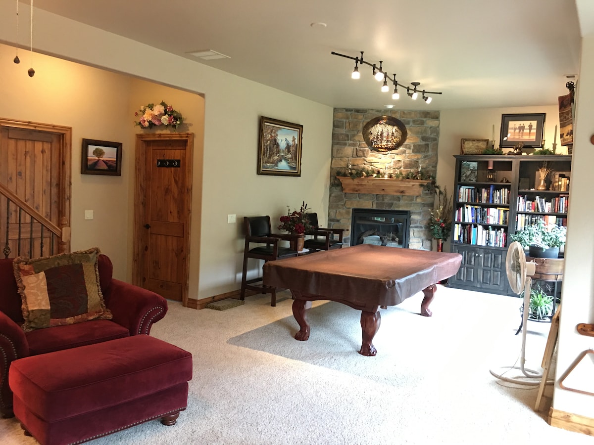 Avec une rivière dans la cour à côté du jacuzzi privé et un énorme foyer à gaz pour tous vos invités, que pourriez-vous demander de plus?! Si vous aimez regarder la faune locale traverser un ruisseau sur une terrasse arrière luxueuse parfaite pour toutes les saisons, alors vous devriez réserver ici. Profitez de toutes les commodités d'une cuisine équipée avec une touche de conservateur, d'un porte-serviettes chauffant, d'un foyer au gaz avec télécommande, d'un gril au gaz, d'une rénovation de haut en bas en 2023. Réservez RiverHouse North, par Forest & Peak Retreats, aujourd'hui!