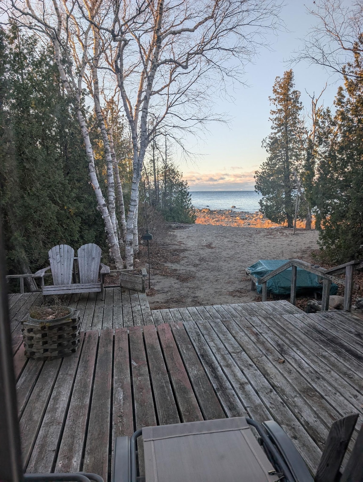 Bienvenue sur notre Airbnb ! Évadez-vous dans la tranquillité à @NorthChannelRetreat, un chalet magnifiquement rénové sur 2 acres privés avec 200 pieds de rivage sur le lac Huron. Profitez de 3 chambres confortables, d'une salle de bain complète, d'une buanderie, d'une cuisine entièrement équipée, de deux terrasses, d'un balcon privé, d'un jacuzzi, d'un sauna au feu de bois, de foyers, de kayaks, de jeux et plus encore. Détendez-vous avec des couchers de soleil à couper le souffle et des nuits étoilées dans cette retraite paisible, parfaite pour les familles qui recherchent le confort et la nature dans une escapade inoubliable.