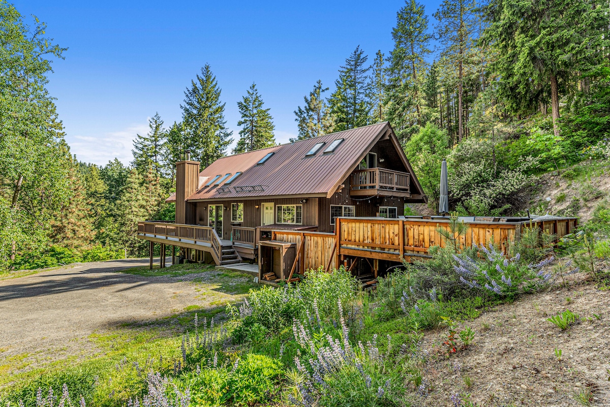 *Secluded, Breathtaking Views on 13 acres; 10 Min drive to Leavenworth, 40 Min to Stevens Pass. 8-Person Hot Tub, Private Back Deck, BBQ, Gas Fire Pit, 2 Pets; Indoor Fireplace *Located near a train line (no horn), most guests find it minimal but worth noting for light sleepers *Fully stocked kitchen, Bright & Open floor plan *Bunk bed space for kids; Board Games, Video Games, *Foosball Table