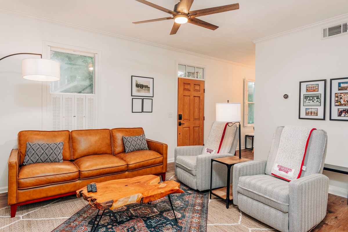 Bully's Bullpen est tout simplement l'endroit idéal pour profiter de votre séjour à Starkville, qu'il soit long ou court. Idéalement située à mi-chemin entre le centre-ville et le campus de la MSU, cette maison de ville de 2 chambres et 1,5 salle de bain est l'endroit idéal pour atterrir. Vous pouvez marcher partout ou prendre la navette à quelques pas. Cette maison de ville entièrement rénovée se trouve à environ 50 mètres de University Drive, au cœur du Cotton District, avec vos restaurants et boutiques préférés à quelques minutes ! À seulement 0,4 mile du campus de MSU!