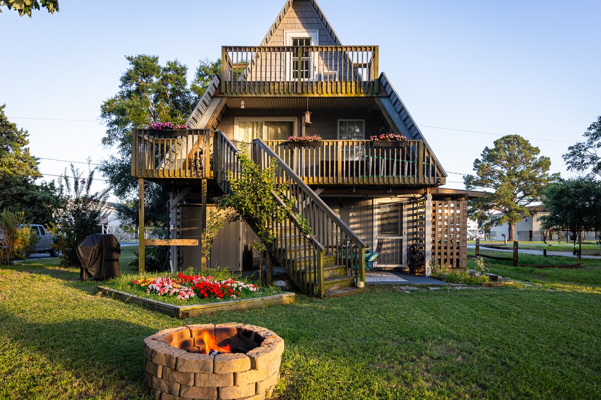 Emplacement, emplacement, emplacement! Découvrez la vraie vie des Outer Banks dans notre maison sur la célèbre et historique Soundside Road à Nags Head. À quelques pas d'un bel accès à la plage familiale et de Jockey's Ridge, les vues et les couchers de soleil sont imbattables. ET, l'océan est à 2 minutes en voiture! À l'intérieur, nous offrons 3 chambres/2 salles de bain, ainsi qu'un salon confortable et une cuisine. À l'extérieur, profitez d'une terrasse spacieuse, d'un coin repas extérieur, d'un foyer et d'un éclairage italien. Le garage est rempli de produits essentiels pour la plage!