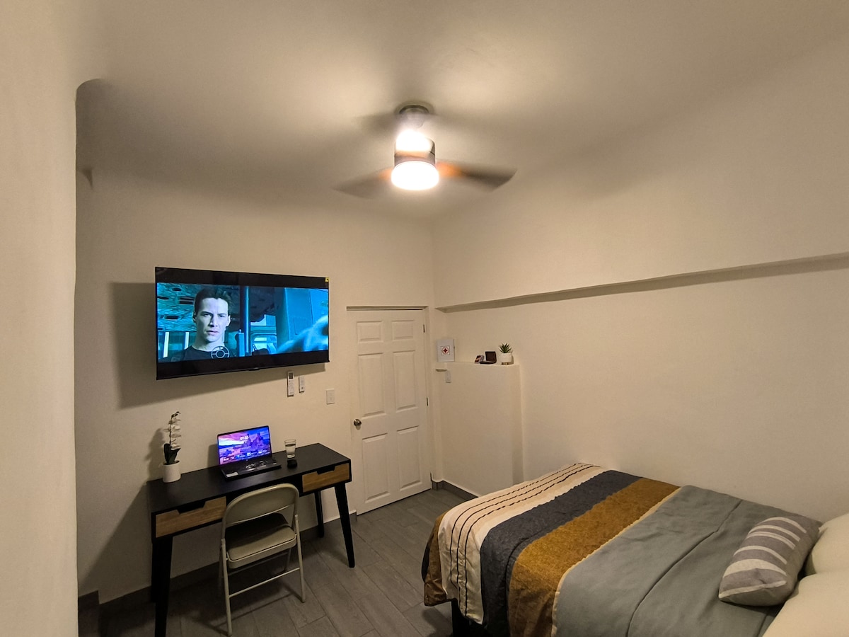 Passez un séjour incroyable dans la zone dorée de Manzanillo, à trois pâtés de maisons de la plage où vous pourrez profiter de longues promenades et des plus beaux couchers de soleil, profitez du repos dans un studio avec cuisine de luxe, lit et canapé-lit simple, A/C, ventilateurs, salon, salle de bain. Profitez d'un délicieux café, offert par Lucy, sur la terrasse relaxante.