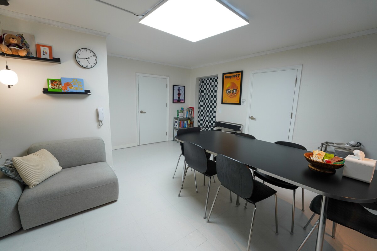 Je suis Hostay, ce qui rendra votre voyage à Séoul unique. ※ Le meilleur emplacement pour votre voyage à Séoul - Gare de Mangwon sur la ligne 6 (5 min à pied)/Ligne 2 Station Hapjeong (15 min à pied)/Ligne 2, Airport Railroad Hongik University Station (15 min à pied) - Marché de Mangwon et Mangnidan-gil depuis 40 ans ※ Salle à diner et projecteur - Salle à manger séparée adaptée aux petits rassemblements (6 personnes maximum peuvent entrer) - Projecteur de qualité propre et pièce d'identité Netflix fournis. ※ Entretien du logement bien pensé - Changement de lit et nettoyage à chaque fois pour la propreté - Fournitures de douche de base (shampoing, gel douche, après-shampoing) et serviettes fournis - Fer à repasser et sèche cheveux étincelants ※ Nous visitons périodiquement une entreprise professionnelle (Cesco) pour travailler sur la prévention des insectes. ※ Immeuble et éléments principaux Wi-Fi 5G/ascenseur/climatiseur et chauffé/lave-linge/machine à capsules de café/réfrigérateur/ustensiles de cuisine et vaisselle ※ Précautions d'accueil - Veuillez vous abstenir de cuisiner avec des odeurs fortes, comme de la viande/du poisson dans le logement. - Ne pas fumer et animaux à l'intérieur.