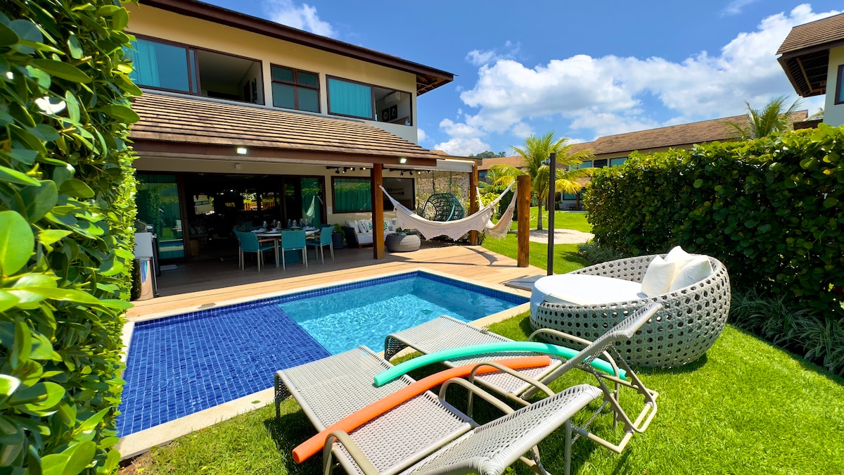 Bungalow Pre-Beira-Mar à l'Eco Resort Carneiros avec 4 suites + dépendance, à Praia dos Carneiros - Pérou, dans le point le plus branché de la région. Toutes les pièces sont climatisées. Le bungalow dispose d'une connexion Wi-Fi exclusive, de la télévision par câble, d'un barbecue, d'une cave à vin, d'une brasserie, d'un congélateur, d'une cuisine complète, de linge de lit et de serviettes. 100% piscine privée, dans la région des Resorts. Adapté aux familles. Superhost: programme d'excellence Airbnb
