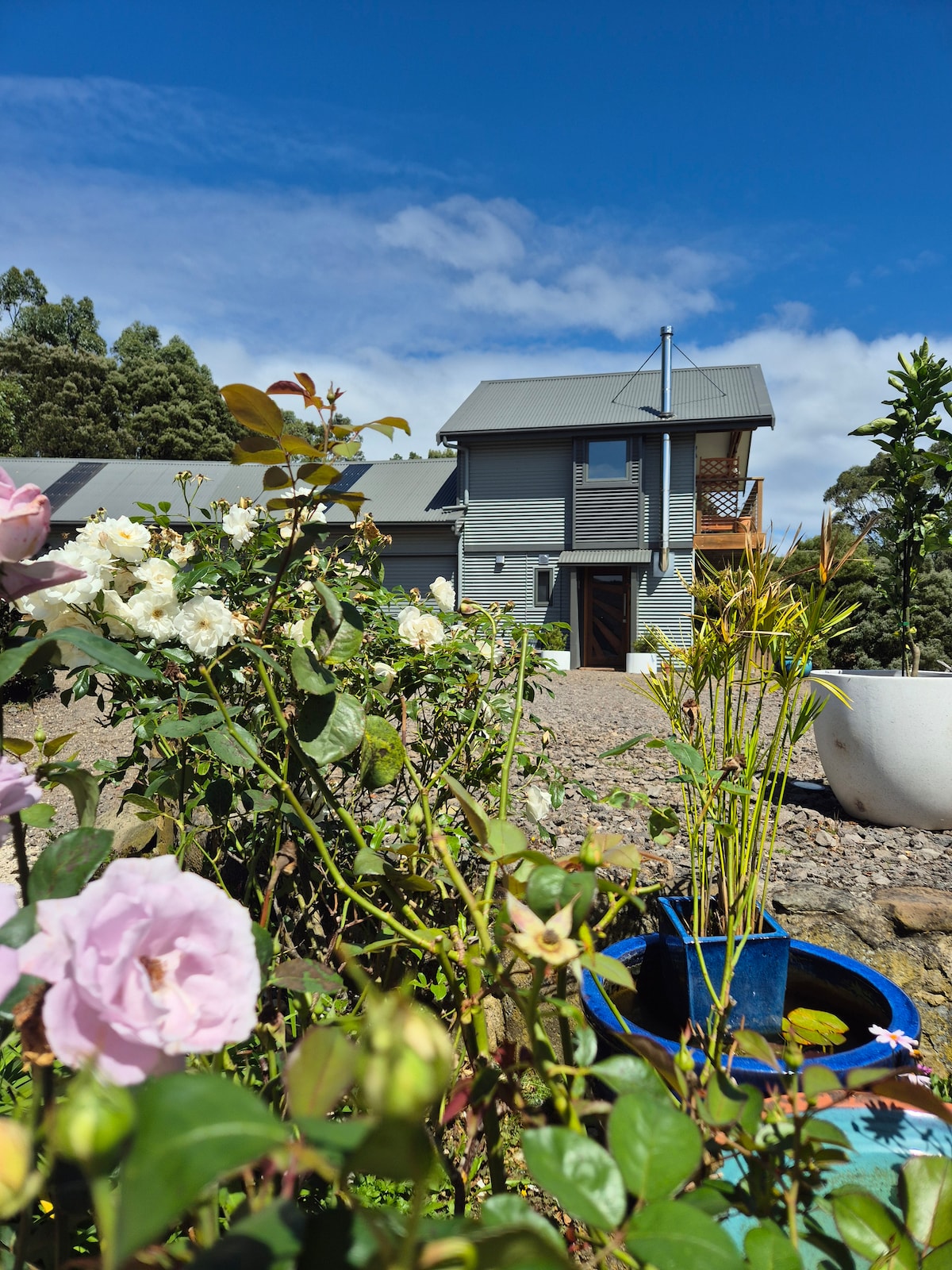 Whitehawks Cottage est un espace magnifiquement conçu entouré de la forêt d'Otway. Situé à 8 km du canton d'Apollo Bay sur la Great Ocean Road. Surplombant le parc national d'Otway, cette escapade élégante et confortable est parfaite pour 2 personnes qui souhaitent s'évader et se détendre en pleine nature. Il y a beaucoup à faire et à voir en explorant les nombreuses attractions que la Great Ocean Road a à offrir... Ou ne partez nulle part, installez-vous confortablement près du feu de bois, admirez les étoiles sur la terrasse la nuit et respirez l'air frais.