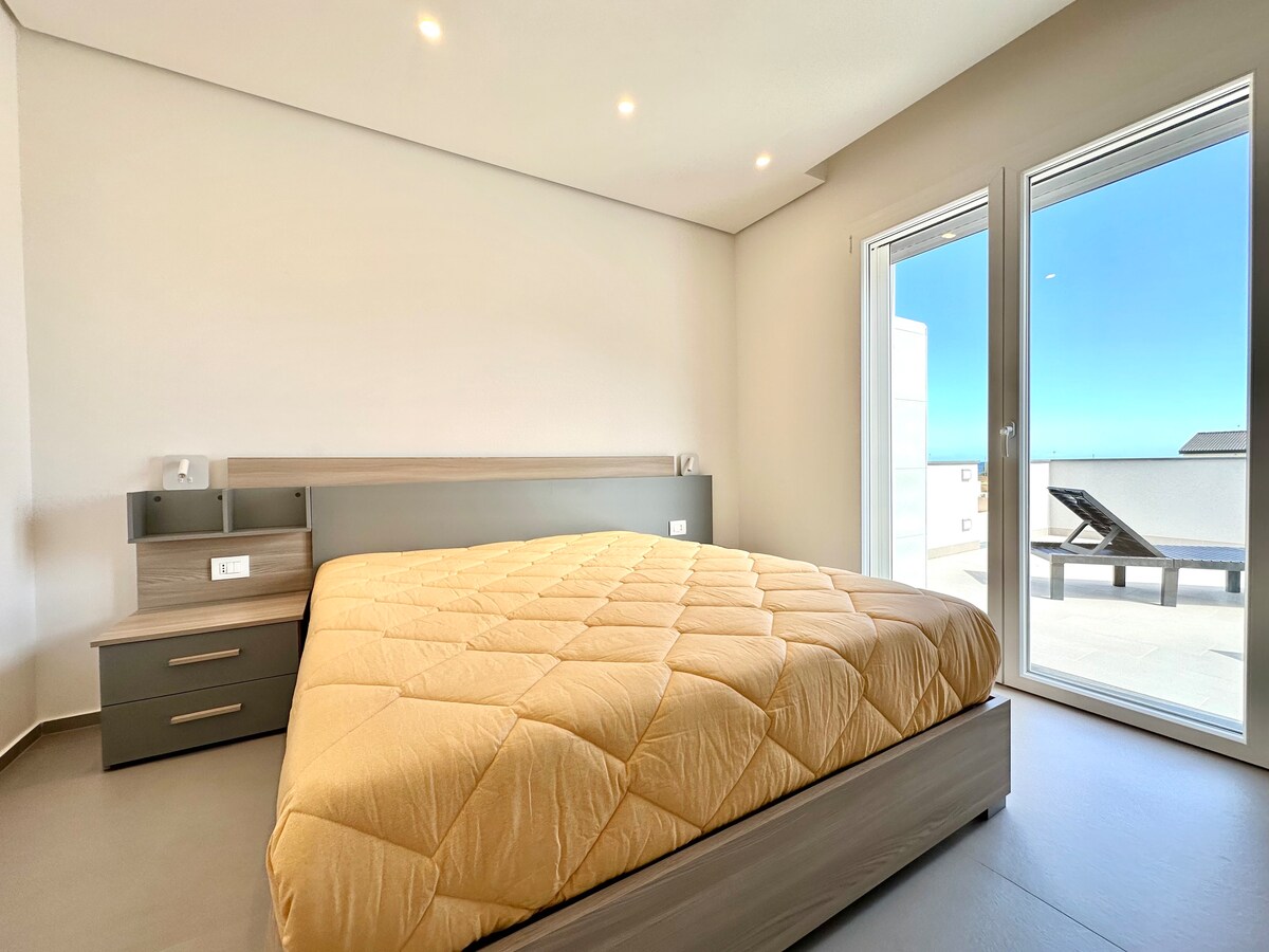 EN : tout nouvel appartement élégant et moderne avec 2 salles de bains et 2 chambres, terrasse avec coin salon et salle à manger extérieurs, et toit privé avec vue unique sur l'île de Motia et Lo stagnone. Très proche des écoles de kitesurf Lo Stagnone, du Saline di Marsala et à 15 minutes de l'aéroport de Trapani. L'endroit unique a un style qui lui est propre. Parking gratuit à l'intérieur de la Villa. IT : Tout nouvel appartement moderne avec vue unique sur la Stagnone et Motia avec 2 salles de bains, 2 chambres, 2 terrasses et un parking intérieur.