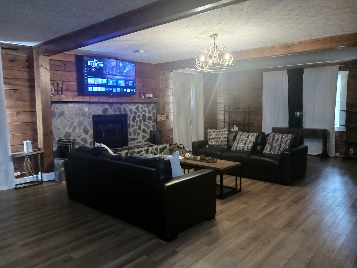 Nous offrons une valeur et un confort inégalés. Détendez-vous avec toute la famille ou des amis dans cette cabane en rondins paisible. Notre cabane dispose de deux grandes chambres et d'une troisième salle de jeux/salle bonus. La cabane se trouve sur 5 acres de terrain ouvert et est idéalement située à proximité de tous les principaux commerces, restaurants et sites sportifs. Nous avons tout mis en œuvre pour nous concentrer sur le bien-être : des matelas en mousse, des canapés entièrement inclinables et des téléviseurs grand écran. Profitez de votre escapade à la Cabin in the Woods !