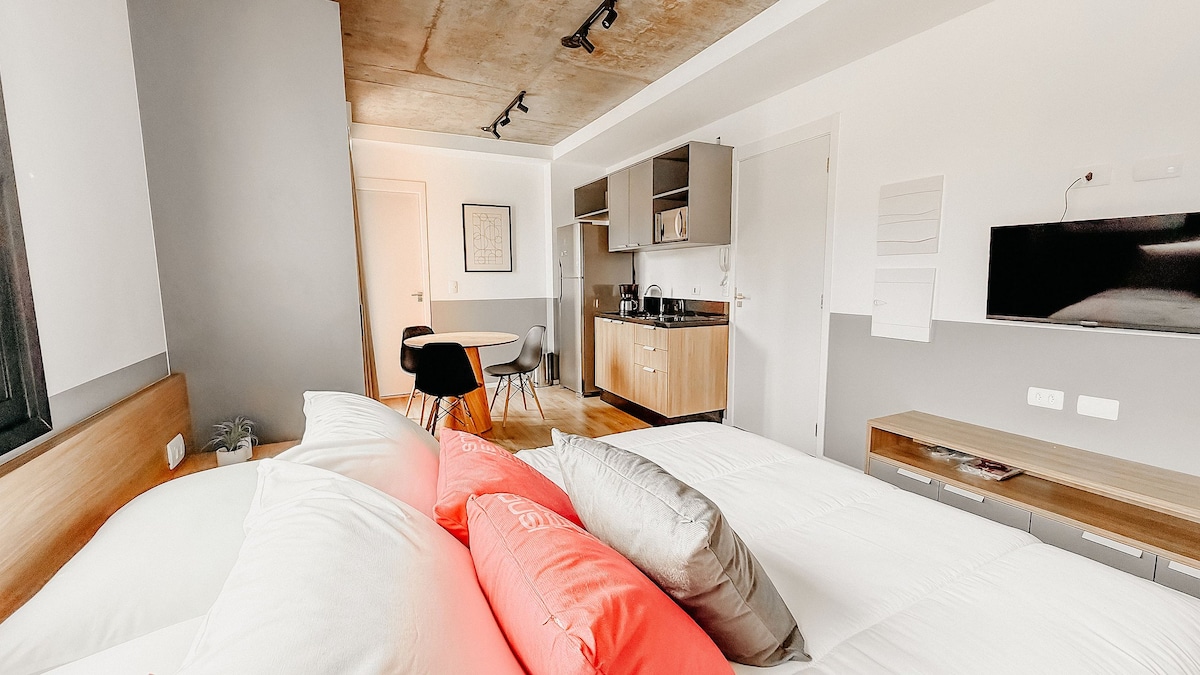 Profitez de ce studio qui est le choix idéal pour les couples à la recherche d'une escapade romantique ou pour ceux qui apprécient leur propre compagnie. Stratégiquement situé sur l'Avenida Getúlio Vargas, cet espace offre une fusion parfaite entre style et praticité, où chaque détail a été soigneusement pensé pour assurer une expérience inoubliable dans la merveilleuse ville. L'espace dispose d'un lit Queen et d'un canapé-lit double, avec un total de 4 personnes, entre le lit et le canapé-lit.