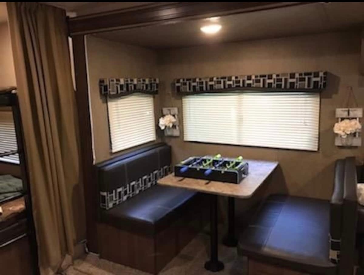 Location Ring Side LLC Nouveau grand camping-car maintenant disponible à la location ! Cette superbe installation est équipée de tous les éléments essentiels pour votre séjour. La chambre principale dispose d'un lit King Size amélioré, d'une télévision et de nombreux rangements. La deuxième chambre dispose d'un lit simple superposé ainsi que d'un lit Queen Size gigogne, et d'une demi-salle de bain située dans cette chambre. Il y a un lit Queen Size dans le loft. VOUS DEVREZ APPELER POUR RÉSERVER VOTRE PLACE DE STATIONNEMENT POUR CAMPING-CAR. Je vais configurer et livrer !