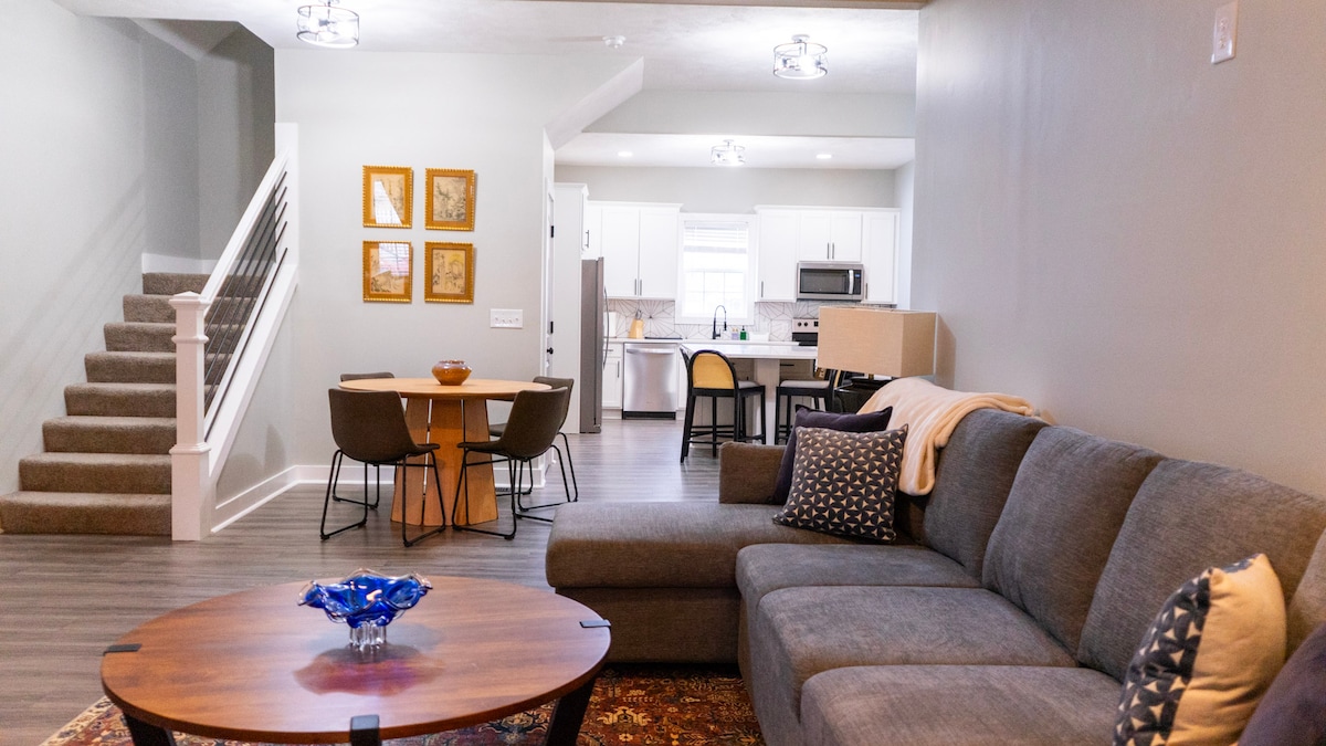 Il n'y a pas de meilleur endroit pour explorer le centre-ville d'Indy que notre élégant appartement au cœur de l'action. Nous avons un parking gratuit sur place, mais vous n'aurez pas besoin de votre voiture ! Sortez de la porte d'entrée et dirigez-vous vers les options de divertissement et de restauration animées de Mass Ave et du quartier de Bottleworks, ou flânez dans les rues pavées historiques de Lockerbie. Vignobles, brasseries, cafés, antiquaires et lieux de divertissement ne sont qu'à quelques minutes de route seulement. La nuit, vous apprécierez la vue étincelante sur la ligne d'horizon.