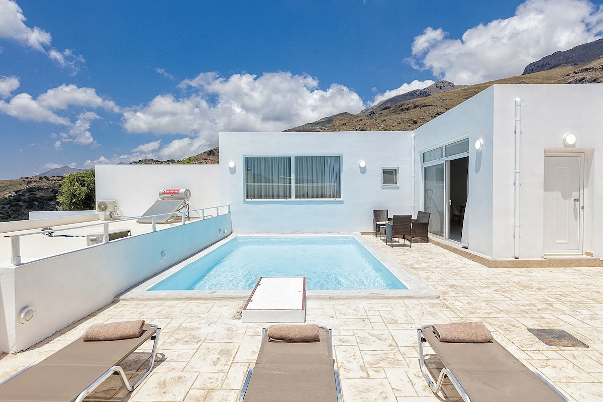 Villa en pierre Halepa avec vue panoramique,grande piscine etjardin