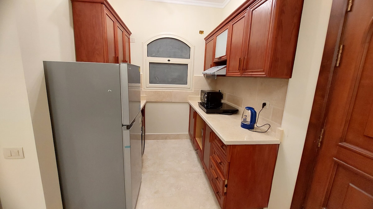 À seulement une minute à pied de la plage, l'appartement hôtelier joliment meublé est équipé d'une literie confortable. Le personnel de l'hôtel est très accueillant et sympathique. Un séjour d'une semaine vaut 600 $ US (frais Airbnb inclus). Des activités amusantes comme la plongée, la plongée avec tuba dans l'eau claire de la mer Rouge et la croisière dans la magnifique mer Rouge bleue sont disponibles avec une équipe professionnelle.