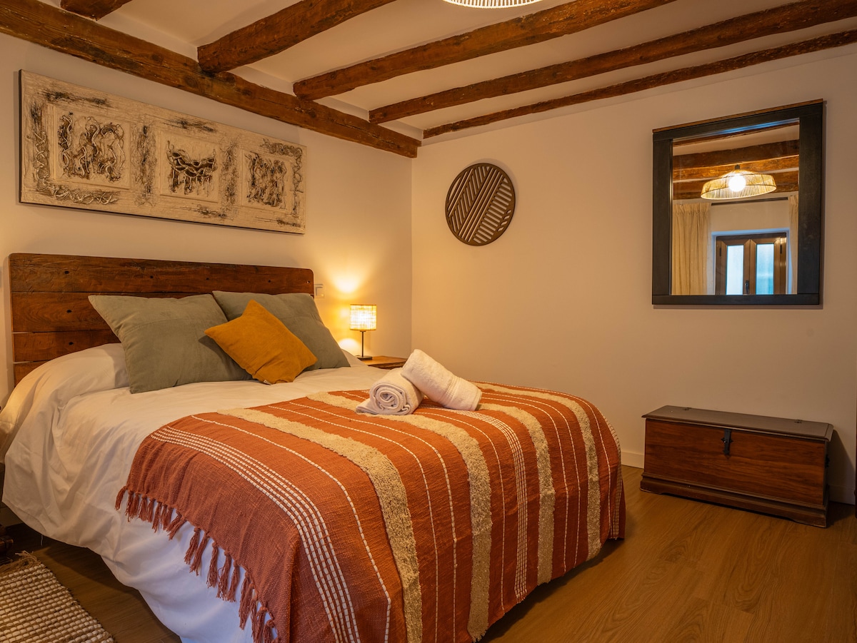 Détendez-vous dans ce logement calme et élégant. Un site unique pour déconnecter, avec tout le nécessaire pour un séjour inoubliable. Nous vous demandons juste de prendre soin d'elle comme si c'était votre maison. Avec jardin privé, grand porche, barbecue et piscine pour profiter de l'été et salon-salle à manger avec cheminée centrale pour l'hiver, Internet haut débit pour profiter ou travailler. 2 chambres avec lit double et salle de bain complète et toilettes de courtoisie. Licence de Castille-et-León, nº VUT40/730