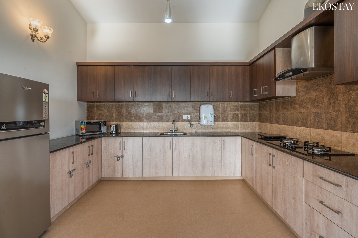 Évadez-vous à l'Aerie – Kotagiri, une villa de luxe au design bien pensé perchée de façon spectaculaire sur une falaise, offrant une vue panoramique à couper le souffle sur les Nilgiris. Avec une esthétique scandinave et moderne, cette villa est un chef-d' œuvre de luxe minimaliste, avec des meubles en bois de teck massif, des sols en béton poli et de grandes fenêtres en verre qui mélangent parfaitement les espaces intérieurs et extérieurs.