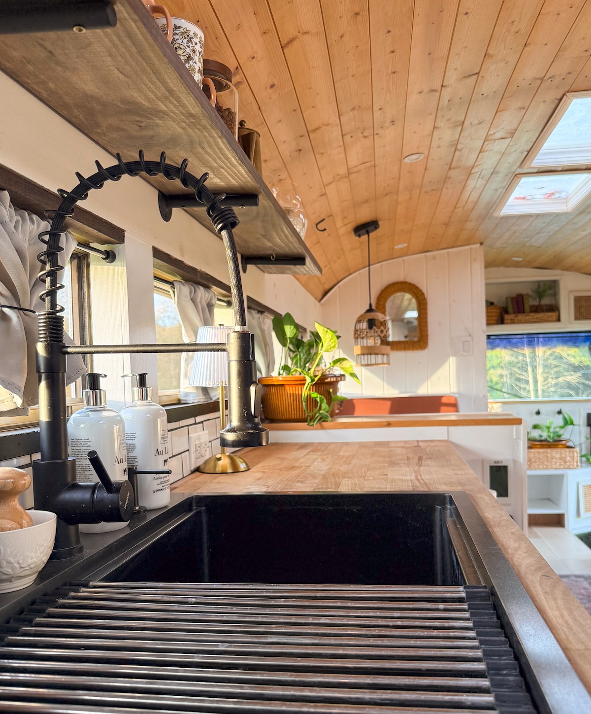 autobus scolaire entièrement converti avec toit-terrasse pour observer les étoiles