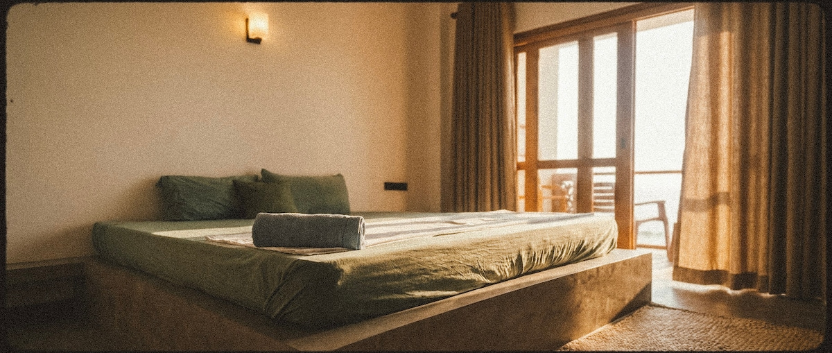 Une chambre très spacieuse avec un lit mezzanine et un grand salon en bas. La chambre dispose d'une cuisine privée et d'une douche dans l'espace extérieur de la cour. Climatisation, ventilateur, eau chaude, moustiquaire et un bon wifi pour un séjour confortable. De plus, vous pourrez profiter de quelques noix de coco de notre jardin et du calme d'un village, tout en étant à moins de 15 minutes de route de la plage de Weligama.