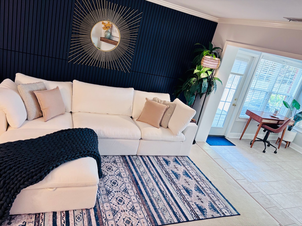 Location élégante de 3BR/1,5BA près du centre-ville de Greenville, Furman & Travelers Rest. Animaux acceptés avec cuisine complète, chambres confortables et bureau dédié — parfait pour les familles ou le télétravail. Profitez d'une cour clôturée avec piscine de stockage saisonnière et foyer. À quelques minutes du Swamp Rabbit Trail, de la montagne de Paris et des meilleurs restaurants. ✨ Vous en voulez plus ? Renseignez-vous sur The Shed — notre salle de sport privée + sauna infrarouge, disponible en complément bien-être.