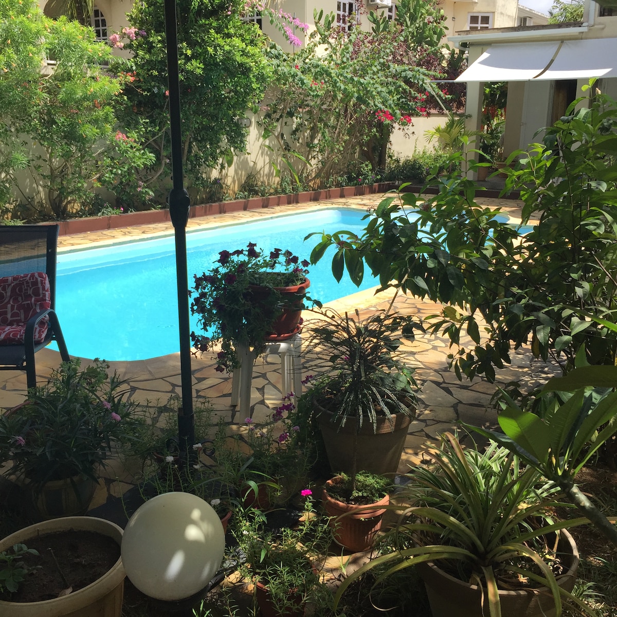 Située dans l’un des derniers villages authentiques de la côte nord, à Grand Gaube, cette maison d'hôte allie charme local et confort moderne. A seulement 12 km de la vibrante Grand Baie, elle offre un cadre paisible, pour se ressourcer. Vous séjournerez dans une chambre double spacieuse au rez-de-jardin avec entrée indépendante et privée, donnant directement sur une belle piscine entourée d'un jardin exotique.Commerces à proximité: pharmacie , boucherie, supermarché , station d’essence.