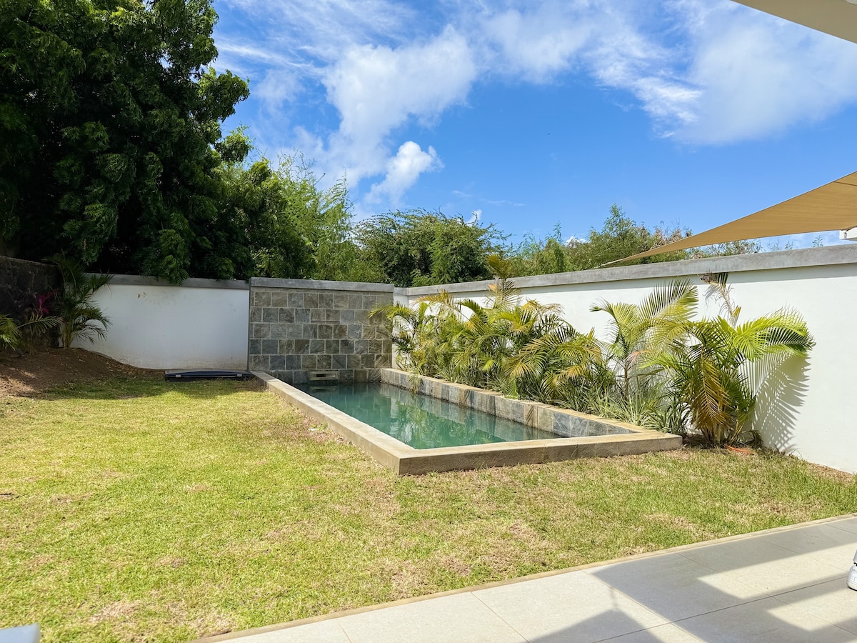 Sur la propriété se trouve la maison familiale de ma famille et à l'arrière se trouve le bungalow de vacances idyllique, entouré de plantes luxuriantes et d'arbres fruitiers dont vous pouvez profiter des fruits de saison à votre guise. Au petit déjeuner sur la terrasse, on entend le chant des oiseaux tropicaux. Des oiseaux colorés sont assis dans les arbres. 2 minutes à pied de la plage, 1 min du supermarché ------------------- Sur demande (payant) : Navette aéroport Repas Excursions Île aux Cerfs Lit bébé